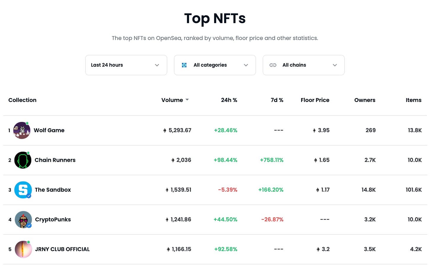 At peak, Chain Runners ran all the way up to number two on OpenSea.